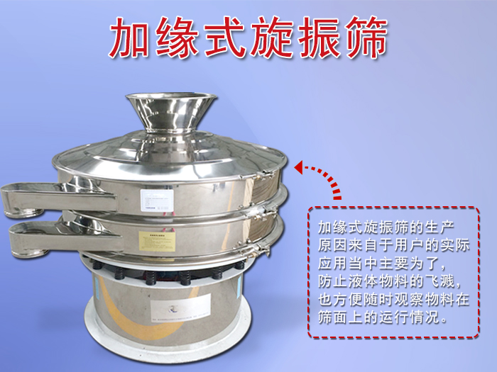 加緣式旋振篩的生產(chǎn)原因來自于用戶的實際應用當中主要為了,防止液體物料的飛濺,也方便隨時觀察物料在篩面上的運行情況。