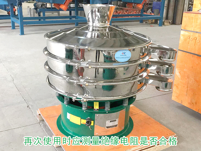 6、加緣型旋振篩停置較長時間后再次使用時,應測量絕緣電阻,用于500伏兆歐表測量,應大于0.5兆歐。