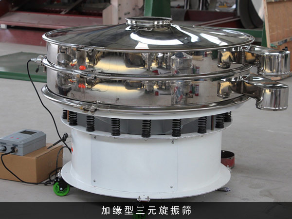 加緣型:加緣型三元旋振篩,是在普通型旋振篩的基礎(chǔ)上增大入料口,并通過特殊角度設(shè)計(jì)以防止液體飛濺的過濾型篩分設(shè)備,在油漆、水過濾、紙漿過濾等行業(yè)有著廣泛的應(yīng)用。該系列旋振篩是我廠在吸收國內(nèi)外先進(jìn)技術(shù)基礎(chǔ)上,設(shè)計(jì)出的具有國內(nèi)先進(jìn)水平的特殊性、高粘度、細(xì)粒物料篩分設(shè)備,主要用于 篩分細(xì)粉、微粉、及干、濕物料等。