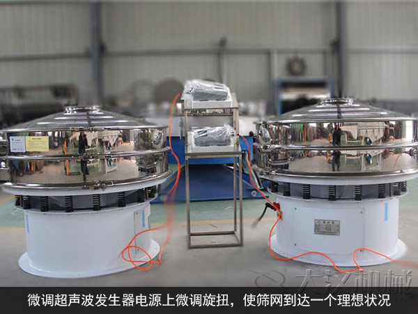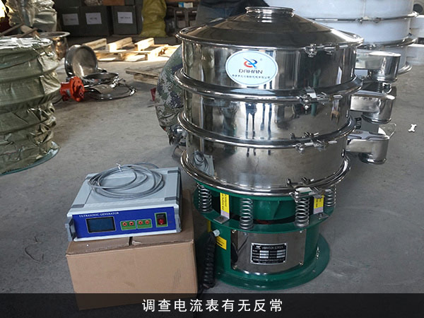 4、運(yùn)行三次元旋振篩分過(guò)濾機(jī)(旋振篩),稍微投點(diǎn)料并且微調(diào)超聲波發(fā)生器電源上微調(diào)旋扭,使篩網(wǎng)到達(dá)一個(gè)理想狀況。(電流應(yīng)小于200mA)