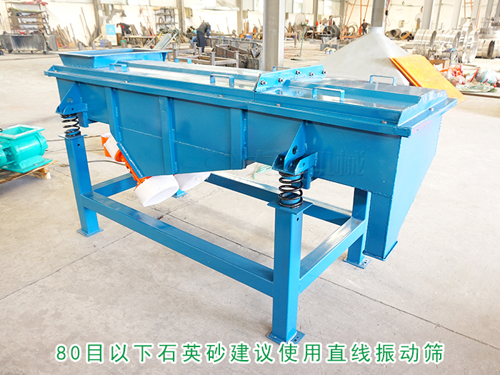對于80目以下的石英砂來說,外形為顆粒狀,大漢振動(dòng)小編建議使用直線振動(dòng)篩。該系列篩機(jī)具有產(chǎn)量大、結(jié)構(gòu)簡單、操作容易等優(yōu)勢,用于篩分顆粒狀石英砂的效果非常顯著;