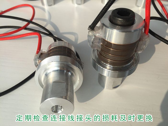 換能器與超聲波電源的連接線是使用針狀接頭連接的,由于使用狀況或移動(dòng),需要將其拆卸再安裝,這期間就會(huì)使針狀接頭出現(xiàn)一定的損耗,所以我們需要定期對(duì)其進(jìn)行檢修,一旦發(fā)現(xiàn)損壞請(qǐng)立即更換;