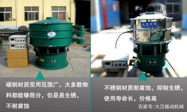 對于材質(zhì)方面,可分為碳鋼材質(zhì)以及不銹鋼材質(zhì),不銹鋼比碳鋼耐氧化,耐腐蝕,普通型旋振篩通體為碳鋼材質(zhì),而標(biāo)準(zhǔn)型旋振篩與金剛砂接觸的地方為304不銹鋼材質(zhì),底座為碳鋼材質(zhì),不同材質(zhì),不同的使用價值